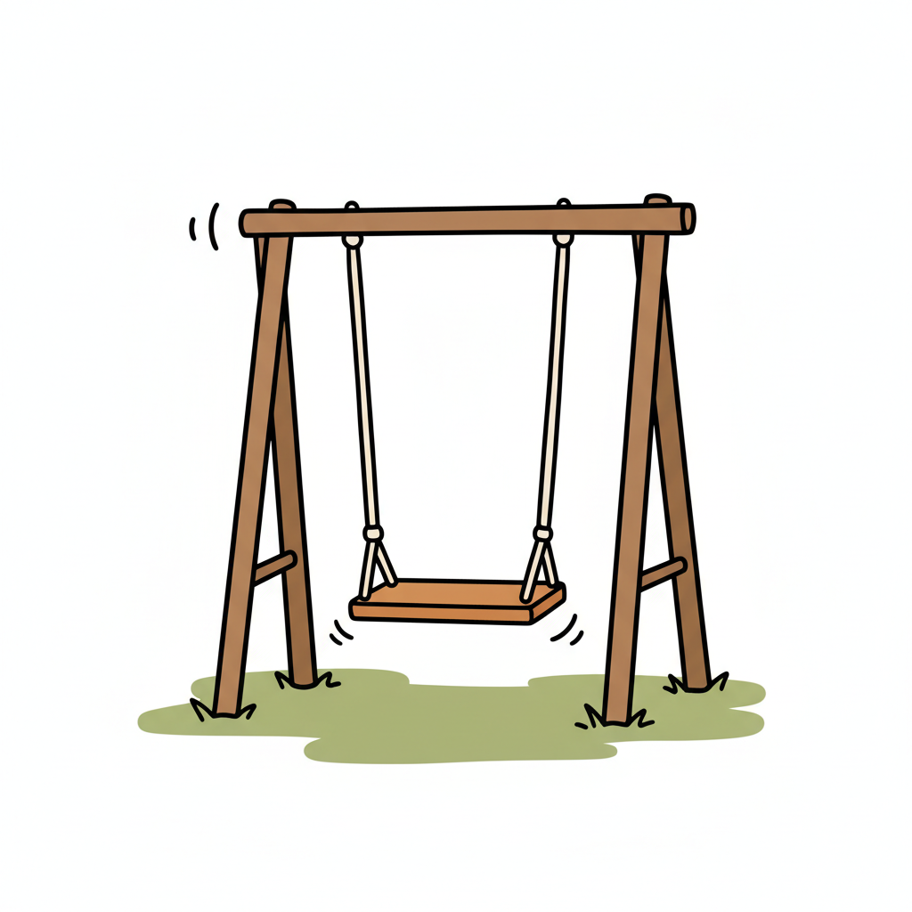 Eine einfache Holzschaukel auf einer Wiese.