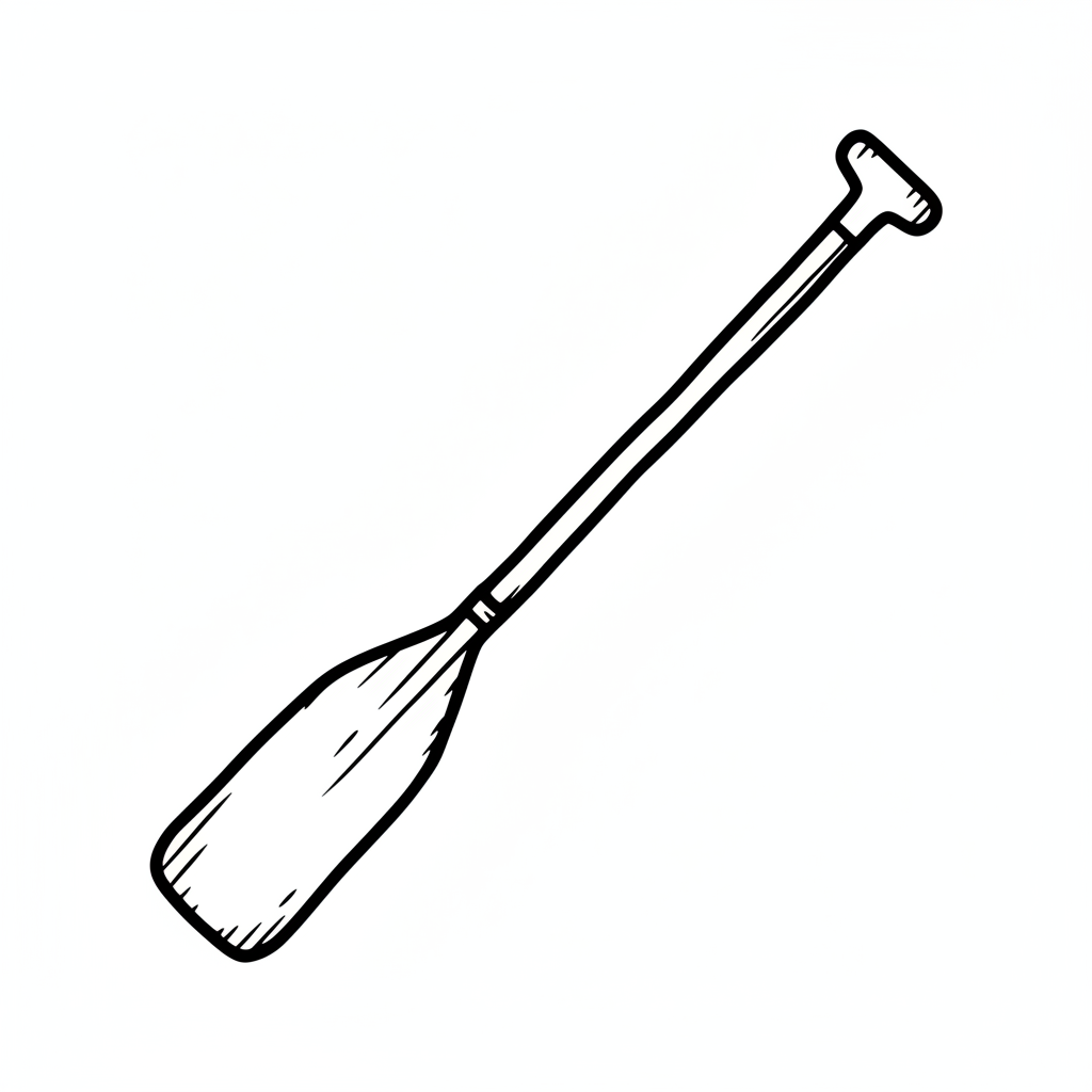 Schwarz-weiße Strichzeichnung eines Paddels mit Griff und Blatt, ideal für Wassersport-Icons.