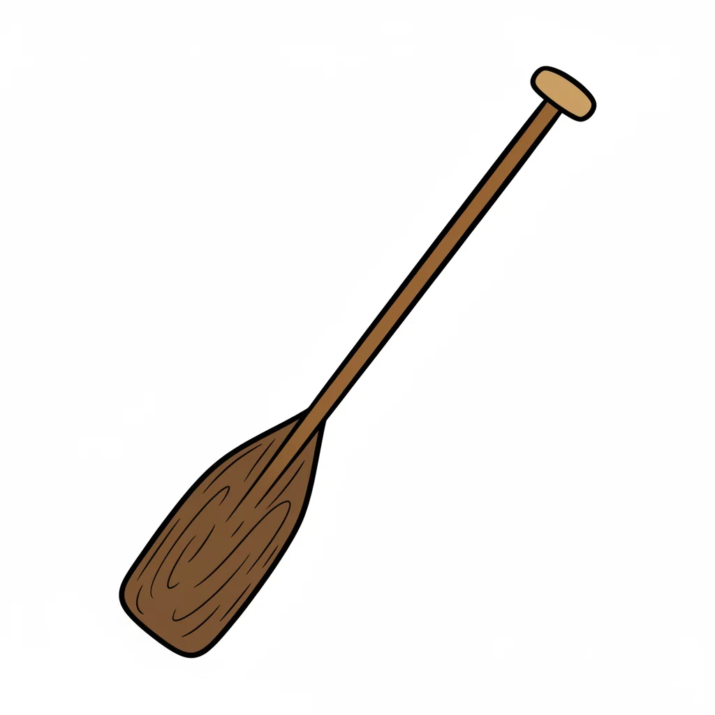 Eine einfache Illustration eines braunen Holzruders mit schwarzem Umriss auf weißem Hintergrund.
