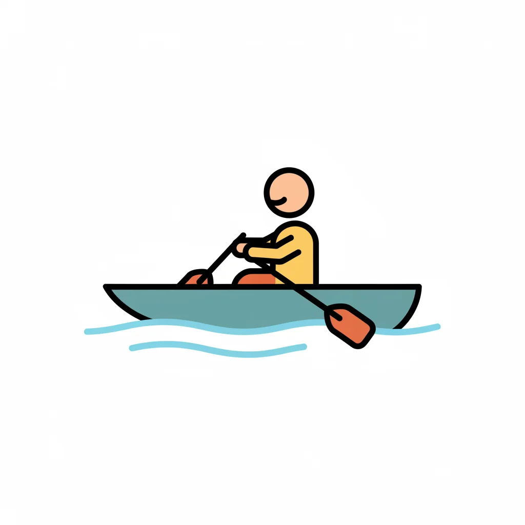 Einfache Illustration einer Person, die in einem Boot auf dem Wasser paddelt.