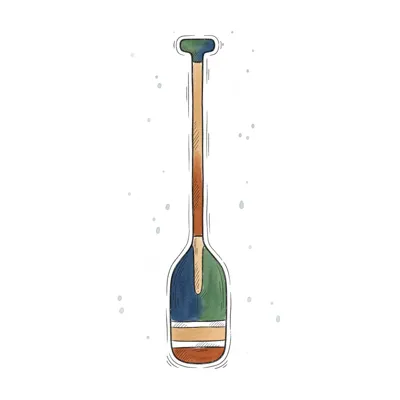Illustration eines bunten Paddels mit Holzschaft und farbiger Klinge auf weißem Hintergrund.