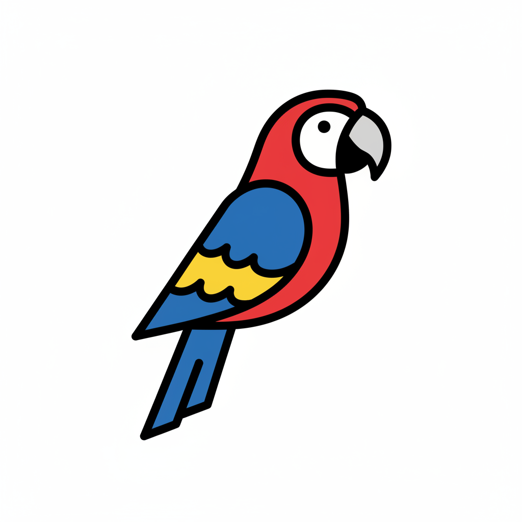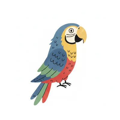 Bunter, stilisierter Papagei mit lebendigen Farben.
