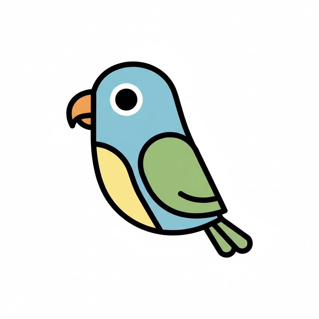 Ein buntes, minimalistisches Vogel-Icon in Blau und Grün.