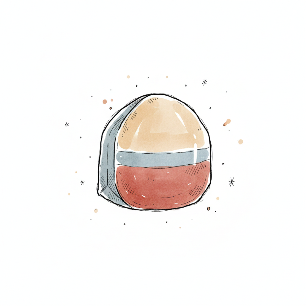 Handgezeichnete Kapsel mit drei Farbschichten: Beige, Grau, Rotbraun. Aquarellstil.