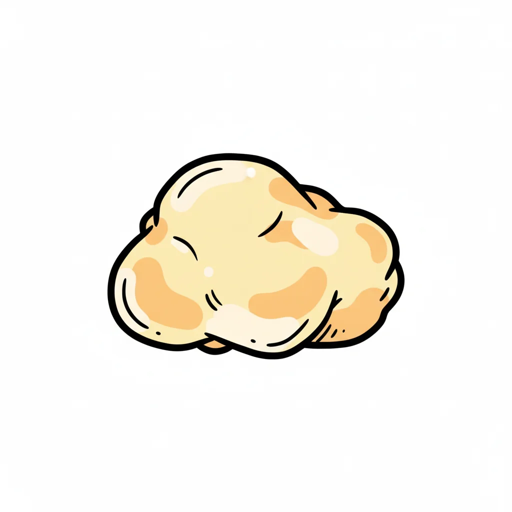 Cartoon-Illustration eines gelben Popcorns mit Schattierungen und schwarzem Umriss auf weißem Grund.