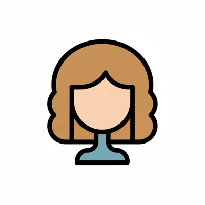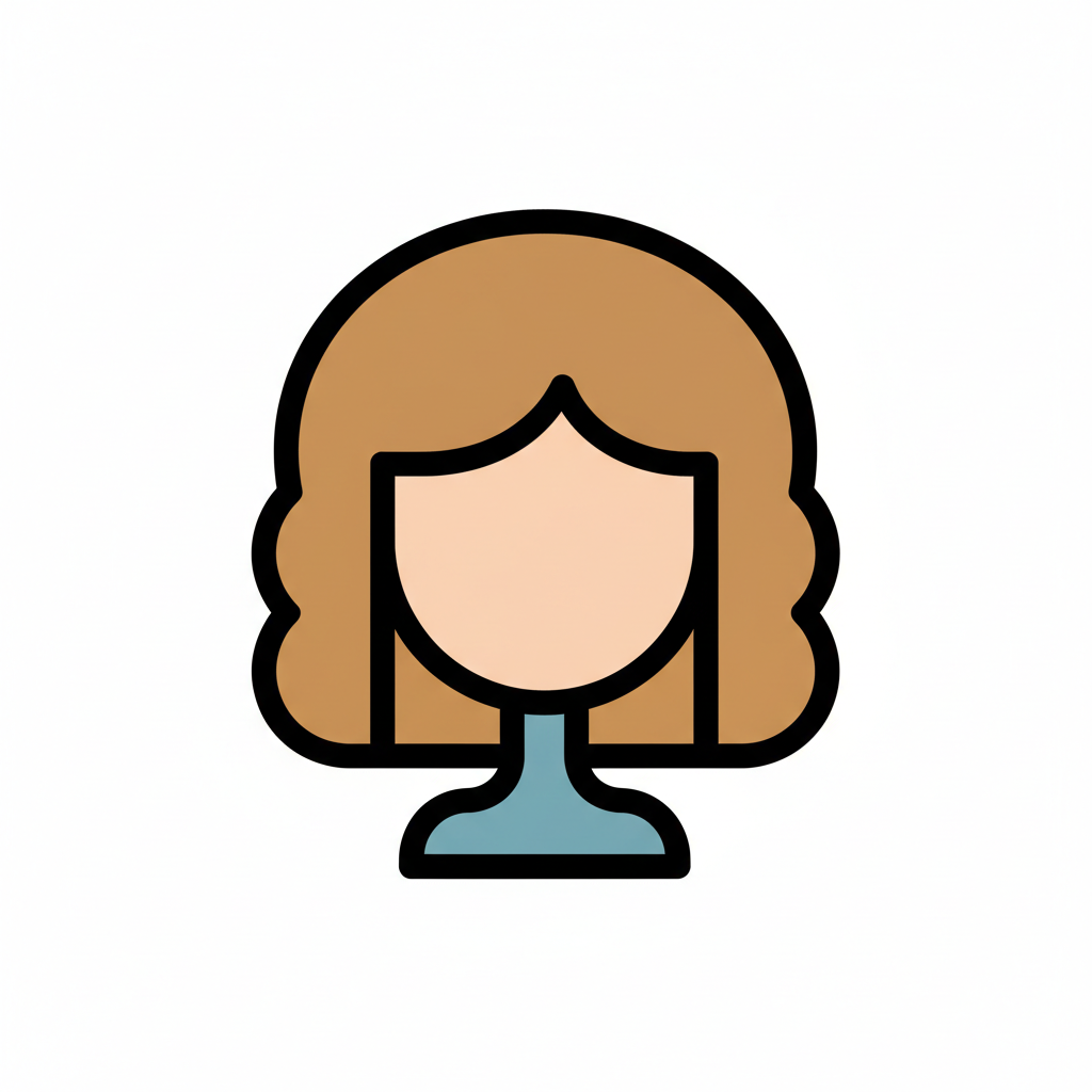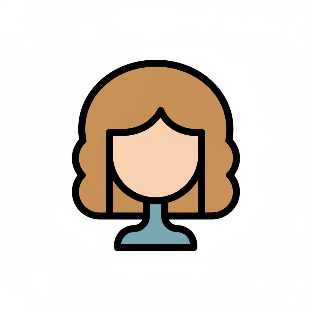 Flaches Icon einer Person mit braunen, welligen Haaren und blauem Kragen. Keine Gesichtsmerkmale.