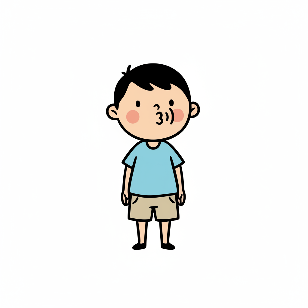 Ein kindlicher Charakter mit Blauem T-Shirt und kurzen Hosen.