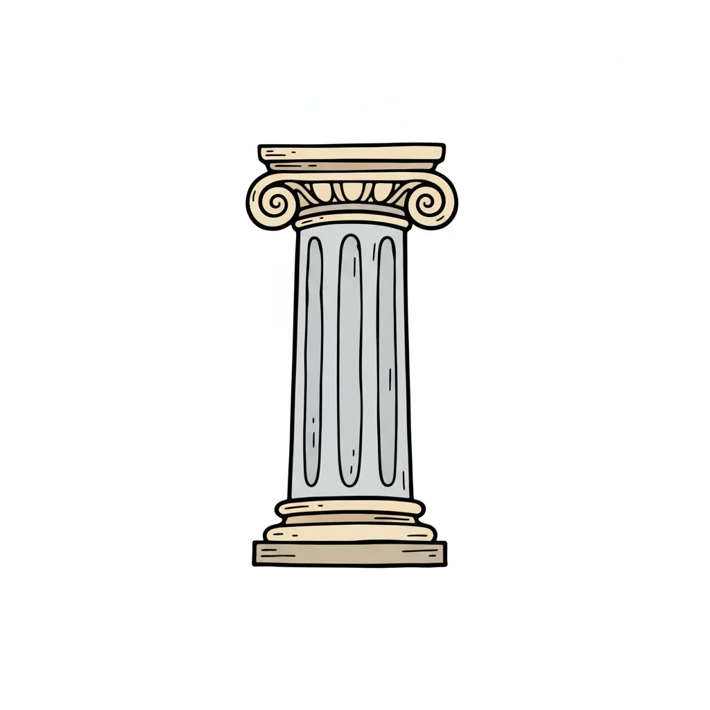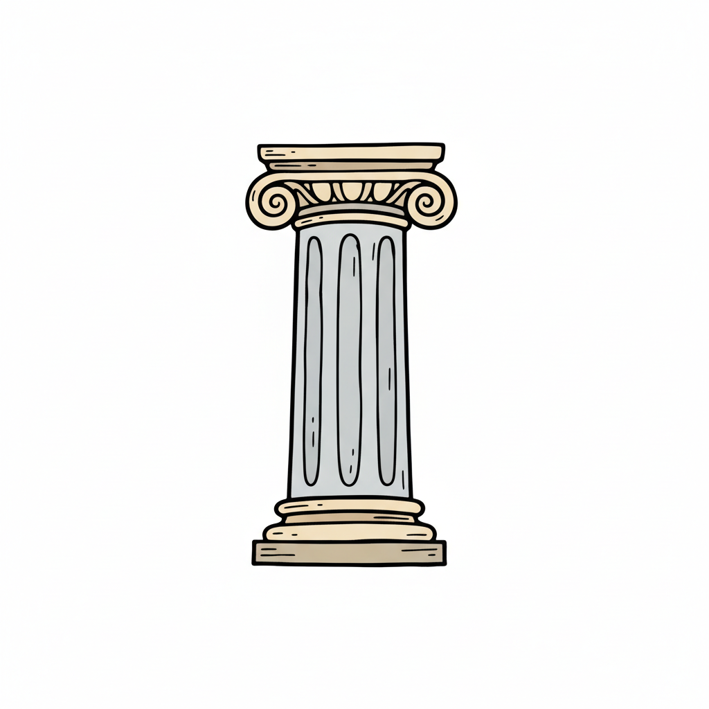 Handgezeichnete, hellgraue Säule mit beigem ionischem Kapitell und Basis auf weißem Hintergrund.