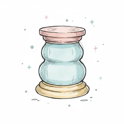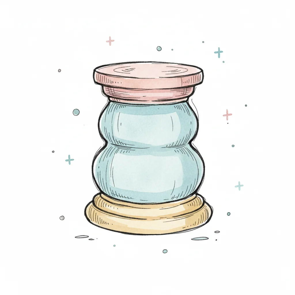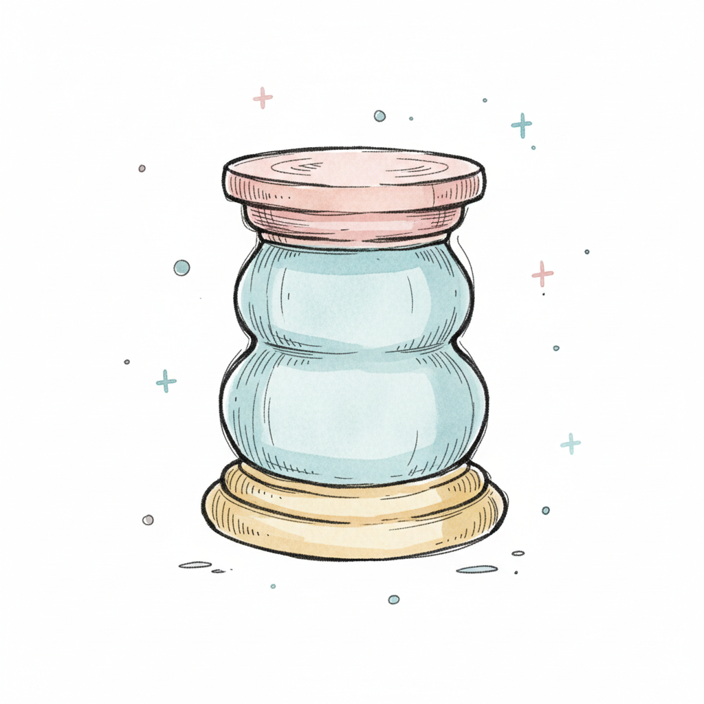 Aquarell-Illustration eines bauchigen Glases mit rosa Deckel und gelbem Boden, umgeben von kleinen Sternen.