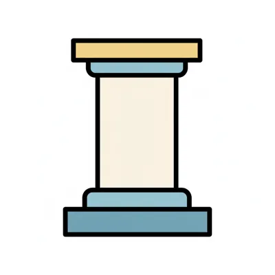 Stilisierte Säule mit beigem Schaft, blauem Sockel und gelb-blauem Kapitell auf weißem Hintergrund.
