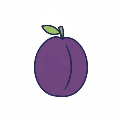 Ein einfaches, gezeichnetes Bild einer lila Pflaume mit einem Blatt.
