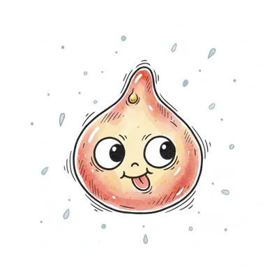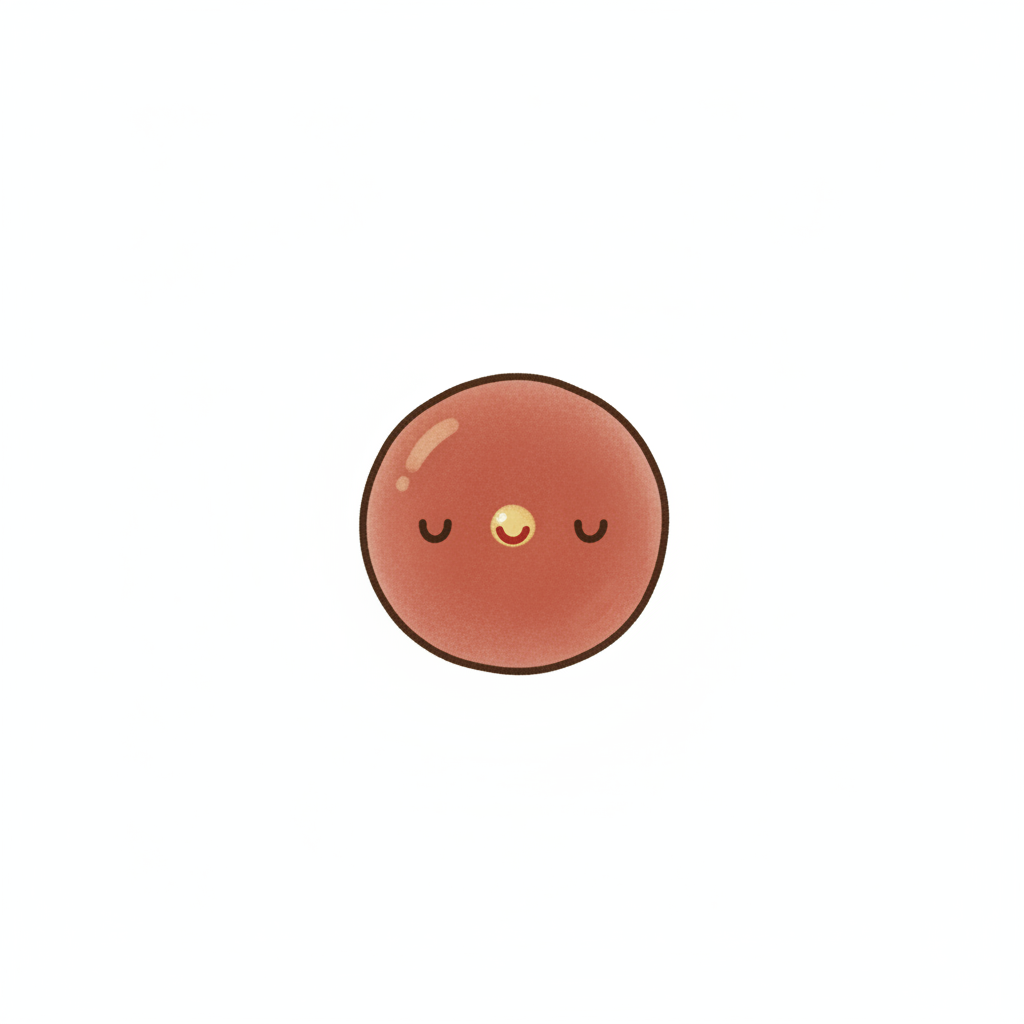 Ein süßer, runder, brauner Cartoon-Charakter mit geschlossenen Augen und einem kleinen Lächeln.