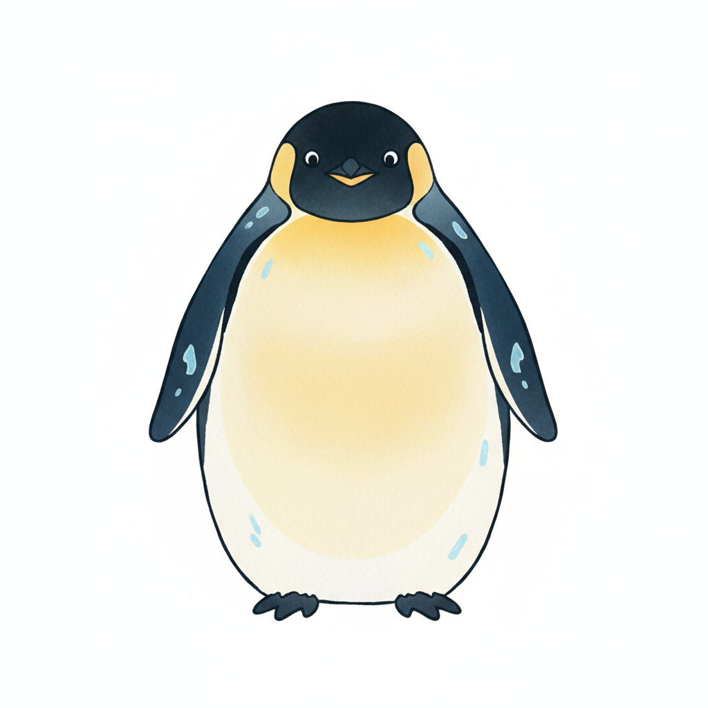Ein niedlicher, cartoonartiger Pinguin mit großen Augen.