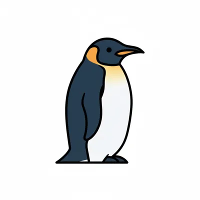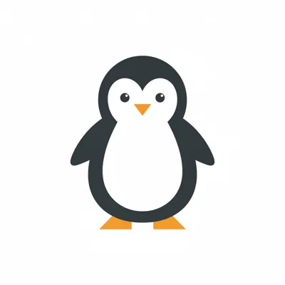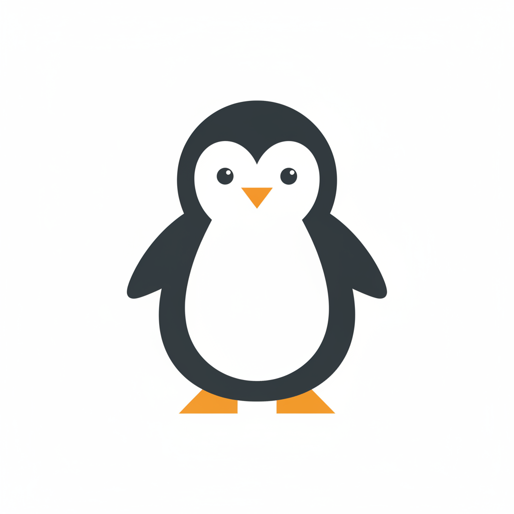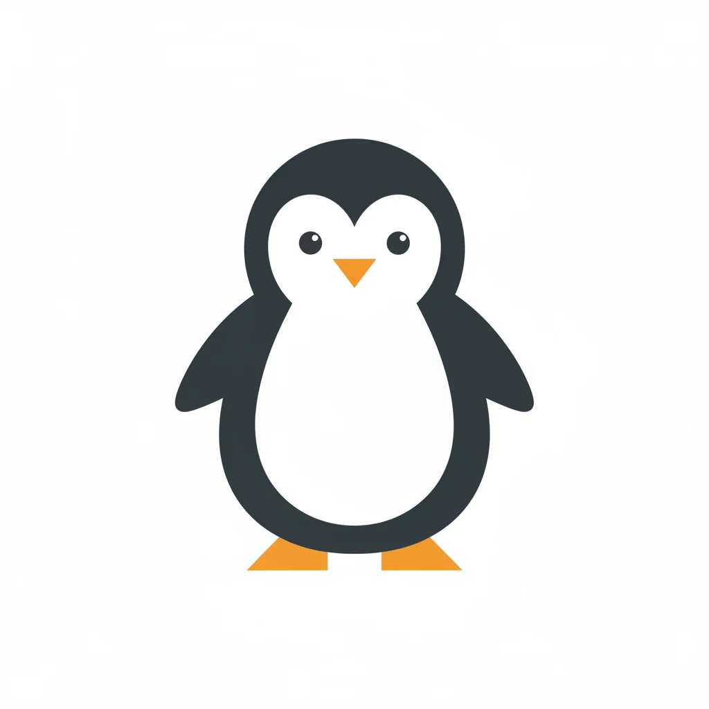 Ein stilisierter Pinguin mit schwarzem und weißem Gefieder.
