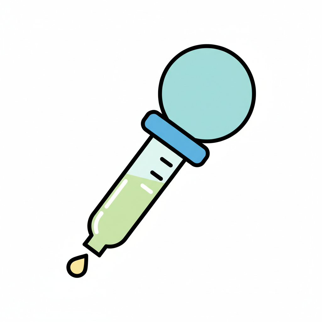 Illustration einer Pipette mit blauem Gummiball, aus der ein gelber Tropfen fällt.