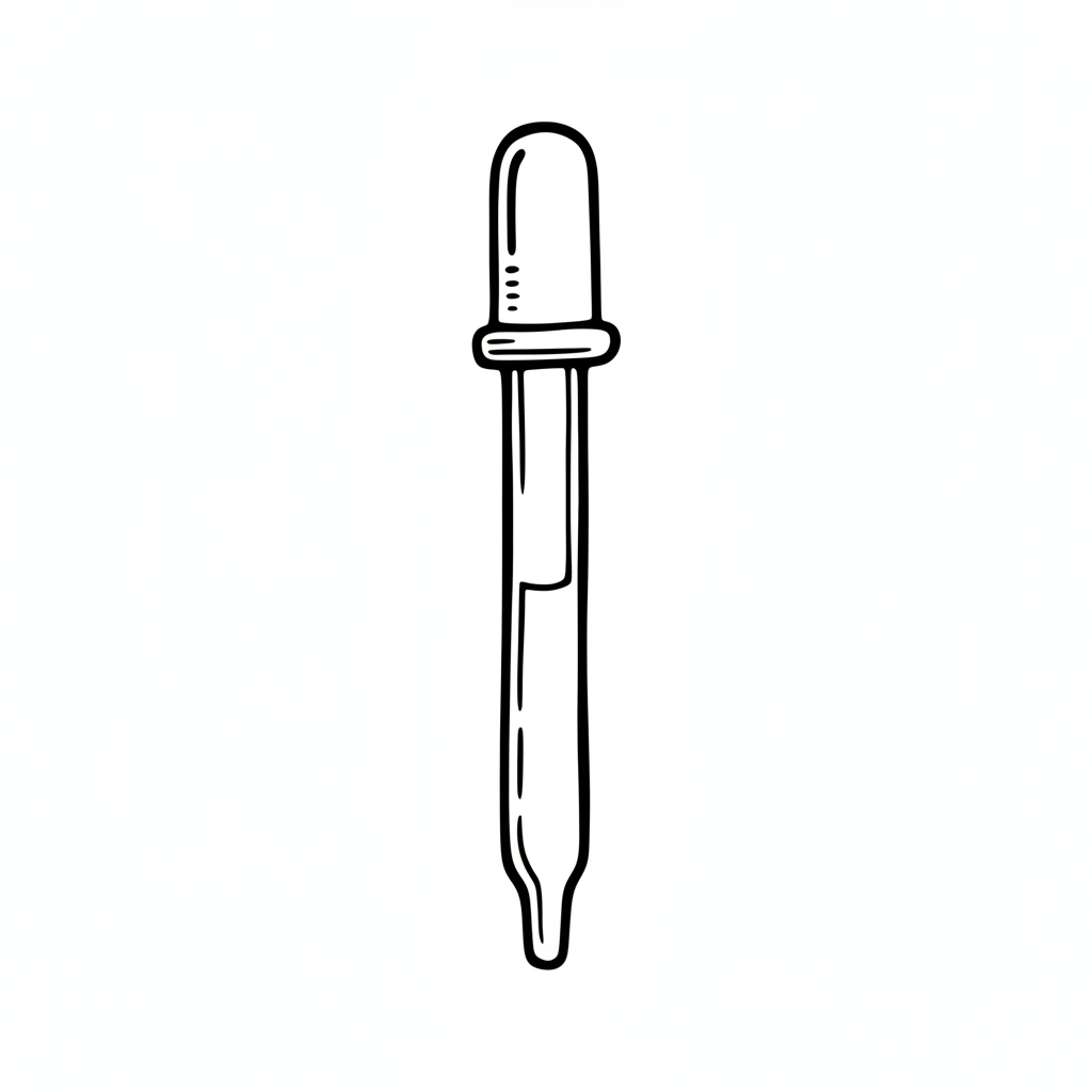 Schwarz-weiße Strichzeichnung einer Pipette mit etwas Flüssigkeit im Inneren.