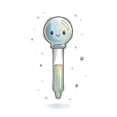 Eine lächelnde Pipette mit grüner Flüssigkeit im Cartoon-Aquarell-Stil auf weißem Hintergrund.