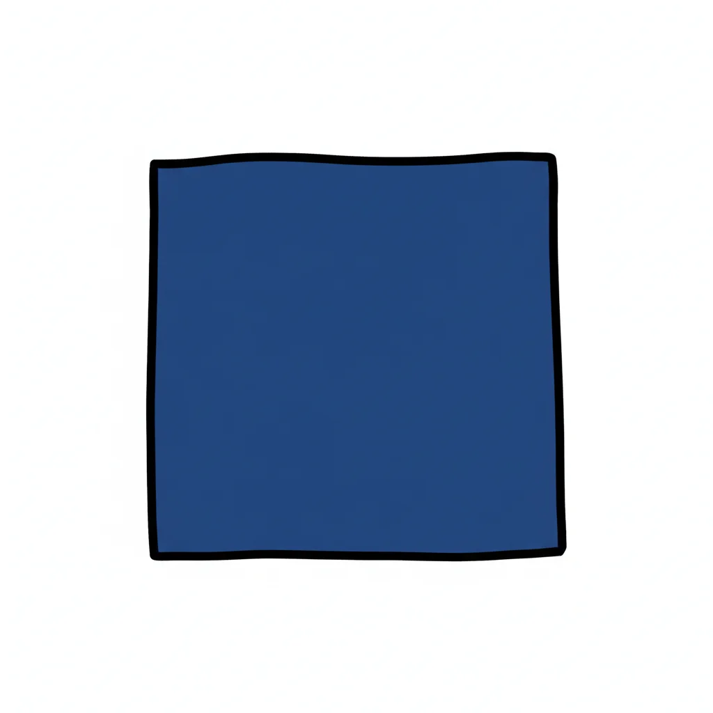 Ein blaues Quadrat mit schwarzem, leicht unregelmäßigem Rand auf weißem Hintergrund.