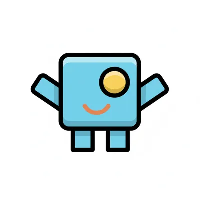 Ein niedlicher, blauer, quadratischer Cartoon-Charakter mit einem Auge und einem Lächeln.