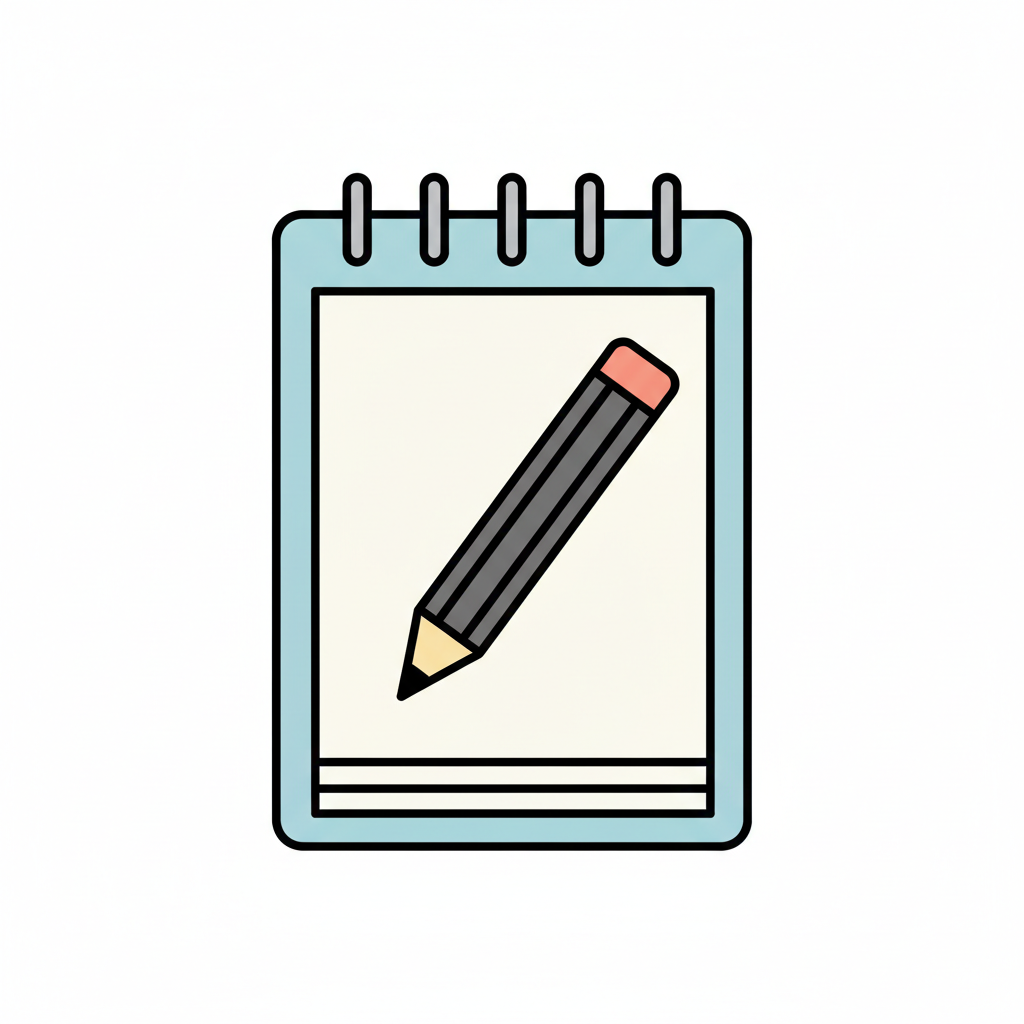 Cartoon-Darstellung eines Notizblocks mit Bleistift, ideal für Notizen oder Planung.