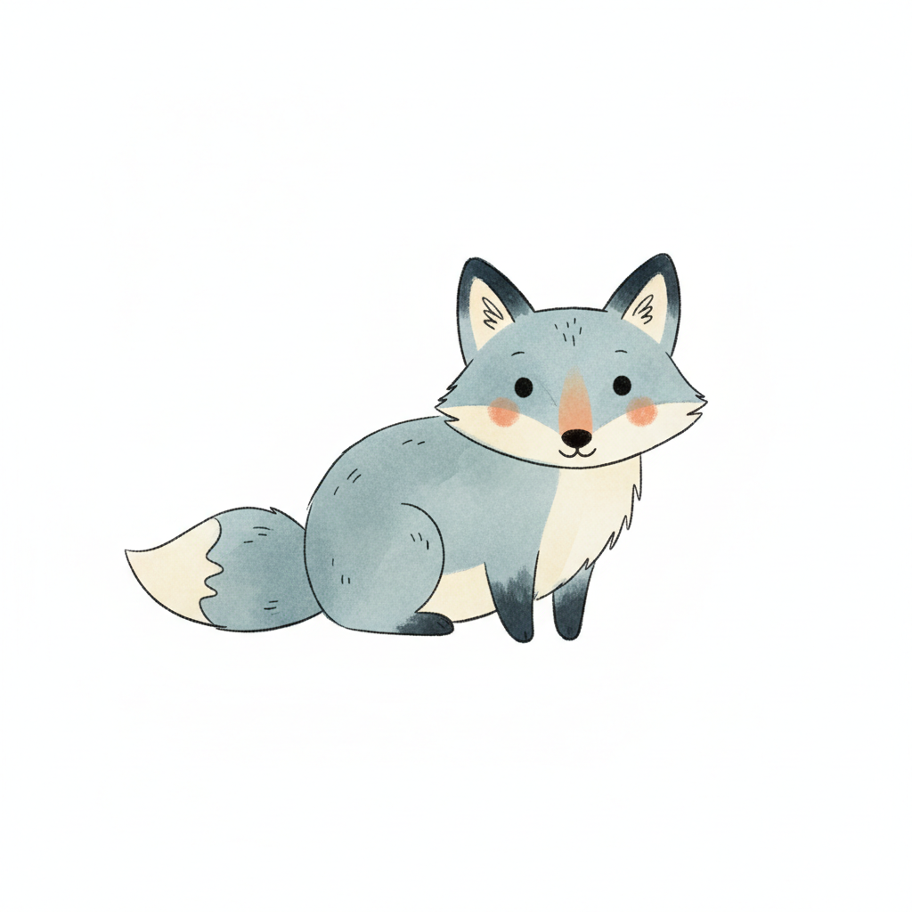 Eine niedliche, cartoonhafte Darstellung eines Fuchses.