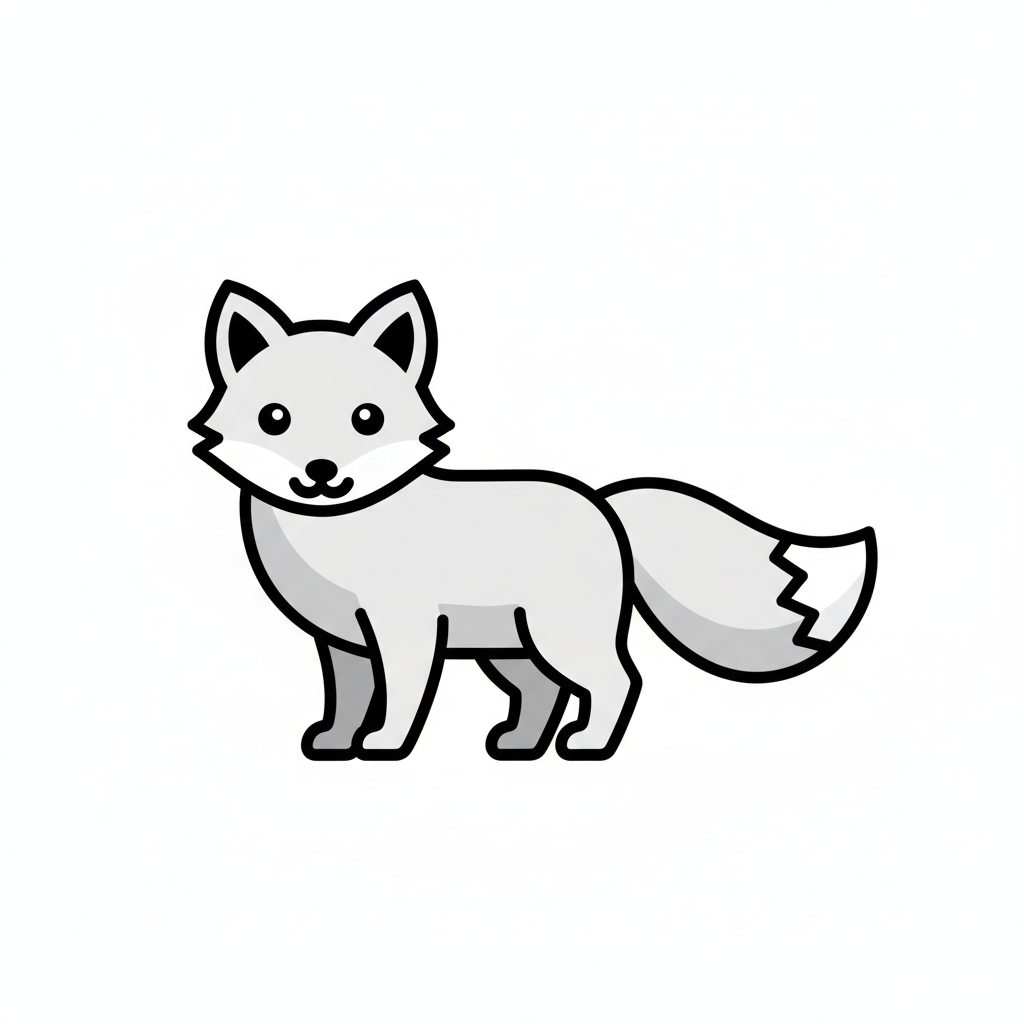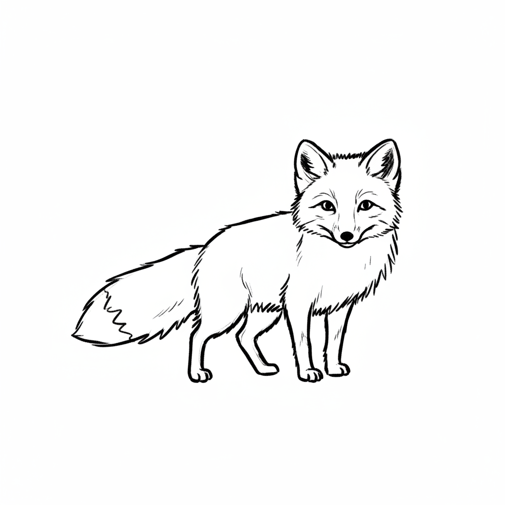 Ein skizzenhafter Fuchs mit auffälligen Ohren und buschigem Schwanz.