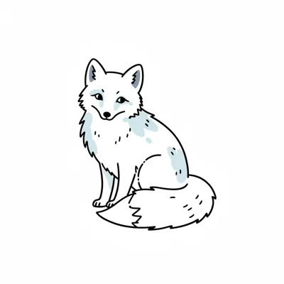 Ein süßer, sitzender, weißer Fuchs mit blauen Akzenten.