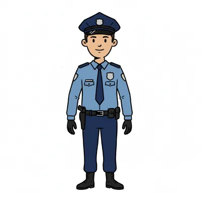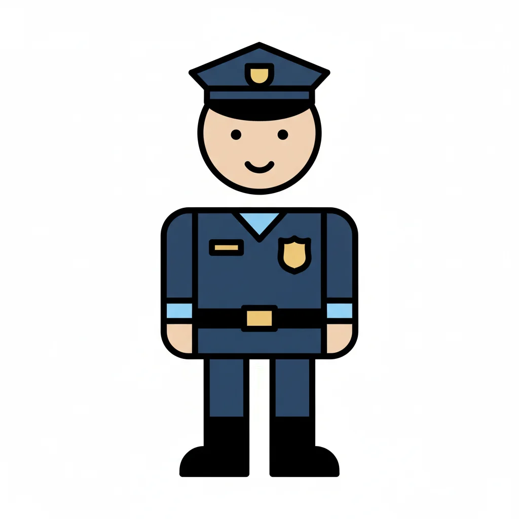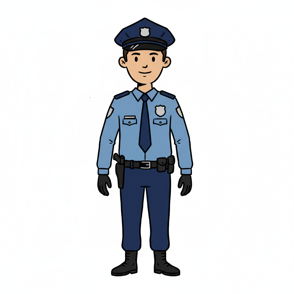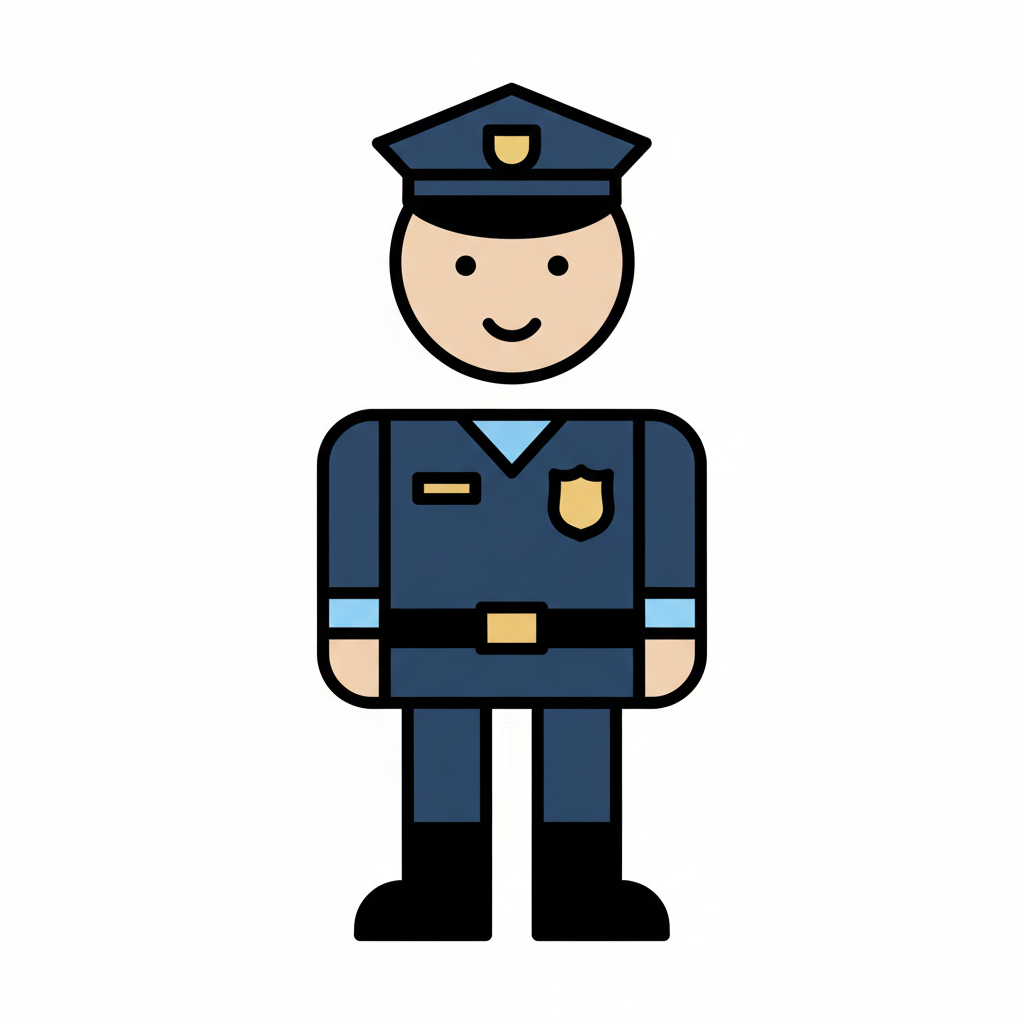 Cartoon police officer in uniform with a friendly expression.