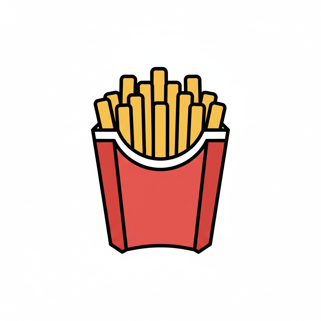 Eine süße Zeichnung von Pommes Frites in einer roten Schachtel mit Smiley.