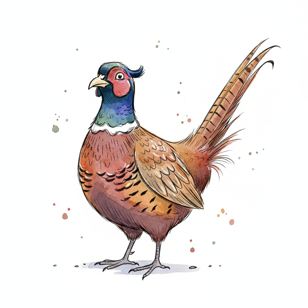 Ein buntes, illustriertes Fasanen-Porträt auf weißem Hintergrund.