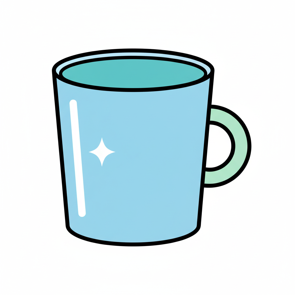 Positiver blauer Becher mit glänzender Oberfläche und einfarbigem Griff.
