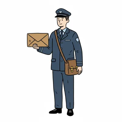 Ein Postbote in blauer Uniform hält einen Brief in der Hand.