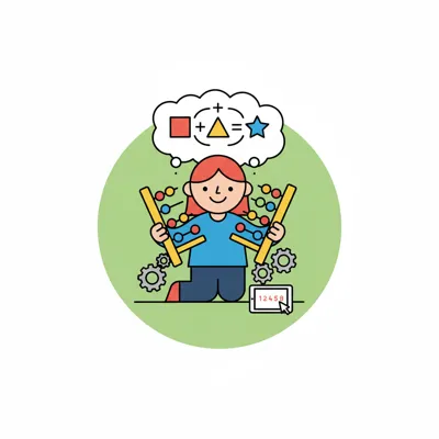 Minimalistische Vektorillustration im flächigen Icon-Stil. Sehr einfache, reduzierte Formen mit klaren, dicken Konturen und wenigen Details. Flächige Farben ohne Verläufe oder Texturen, ruhige Farbpalette, klare Silhouette und gut lesbare, freundliche Figur. Moderne, kindgerechte Lernillustration im Stil einfacher Piktogramme, sauberer Hintergrund und übersichtliche Komposition. Hoher Kontrast, isoliert auf weißem Hintergrund. WICHTIG: KEIN TEXT im Bild. Hintergrund: Rein weiß.