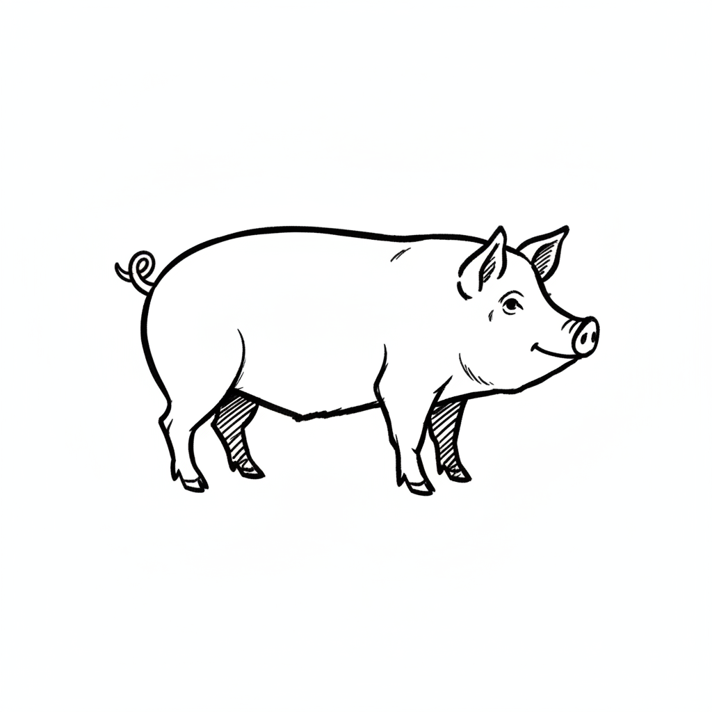 Eine skizzierte Zeichnung eines Schweins in Profilansicht.