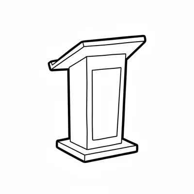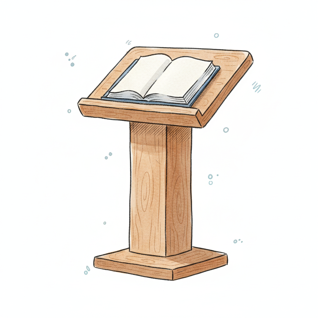 Ein stilisierter Rednerpult in Braun mit Platz für Notizen.