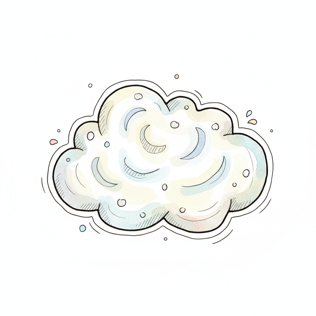 Eine bunte, skizzierte Wolke mit sanften Konturen und leichten Farbtönen.