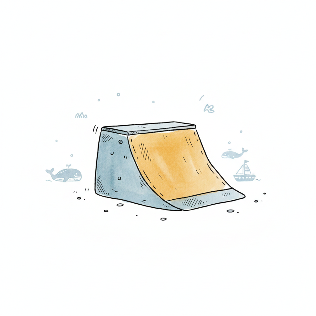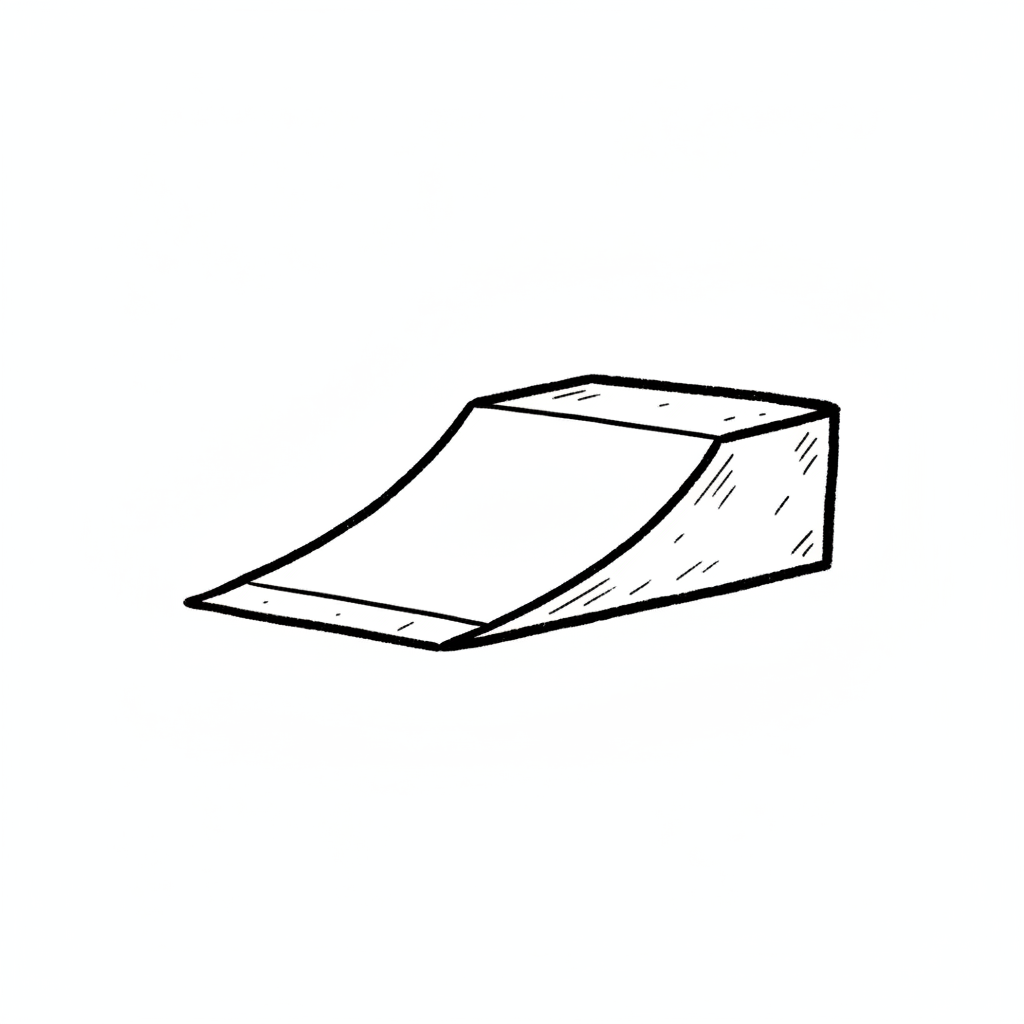 Graue, keilförmige Rampe im Cartoon-Stil mit schwarzer Umrandung auf weißem Hintergrund.