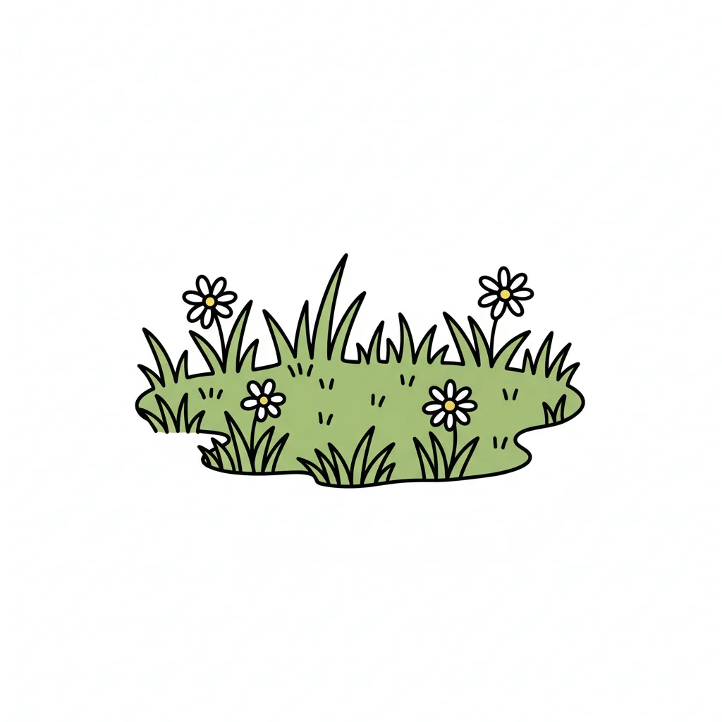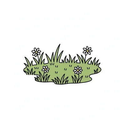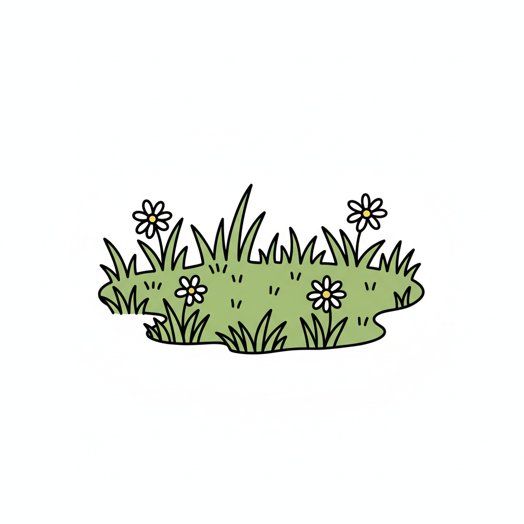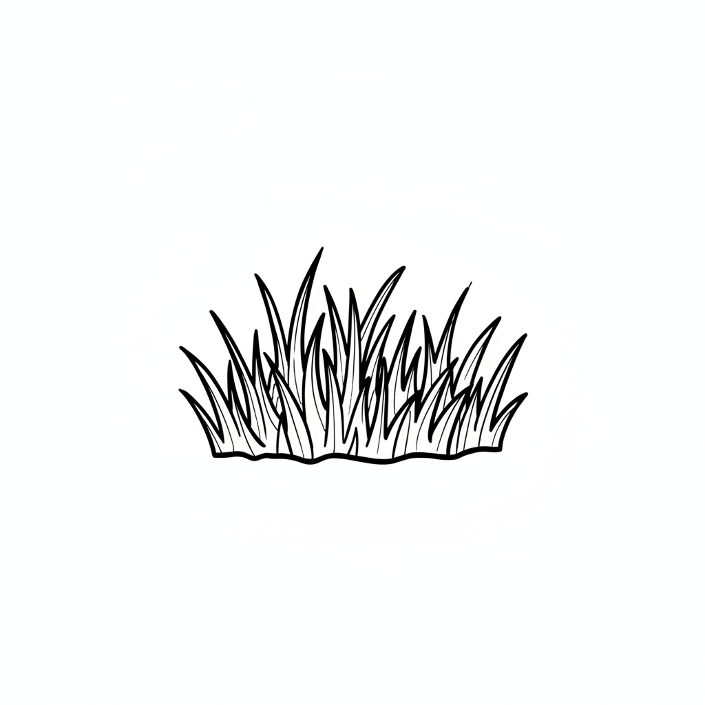 Ein einfaches, skizziertes Grasstück auf weißem Hintergrund.
