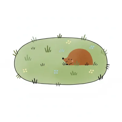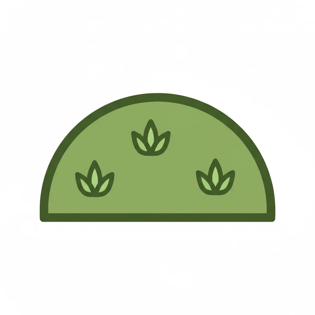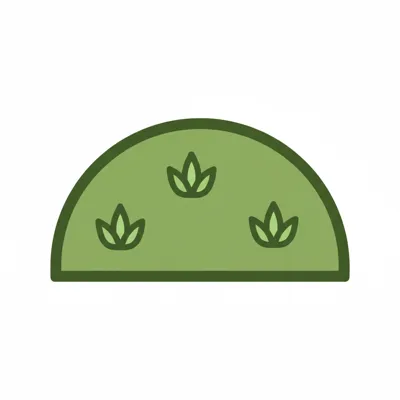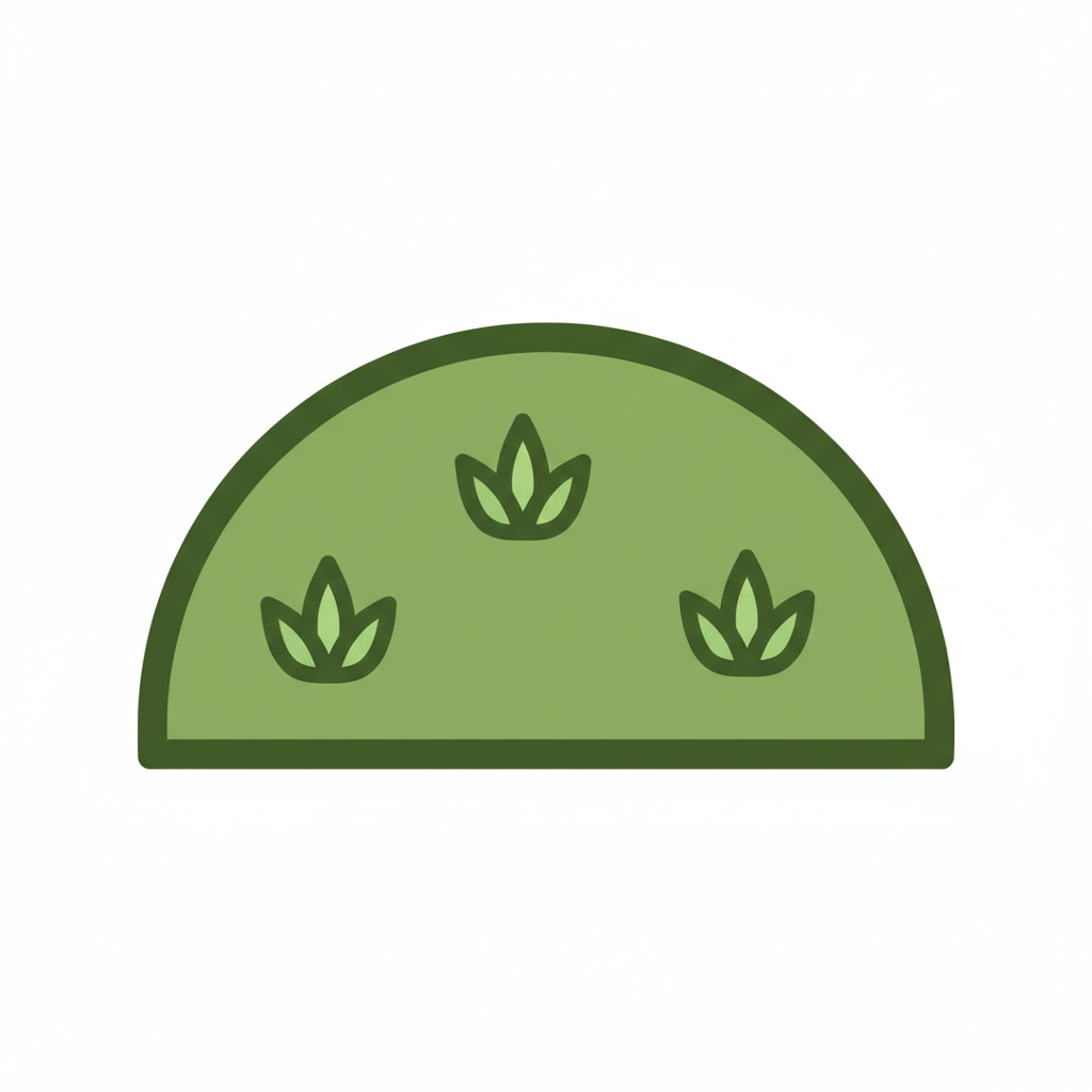 Ein stilisierter, grüner Rasen mit kleinen Pflanzen.