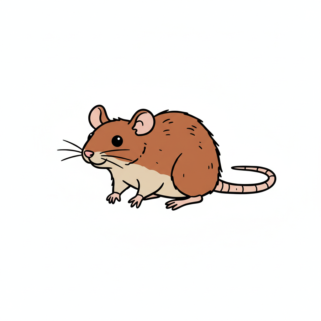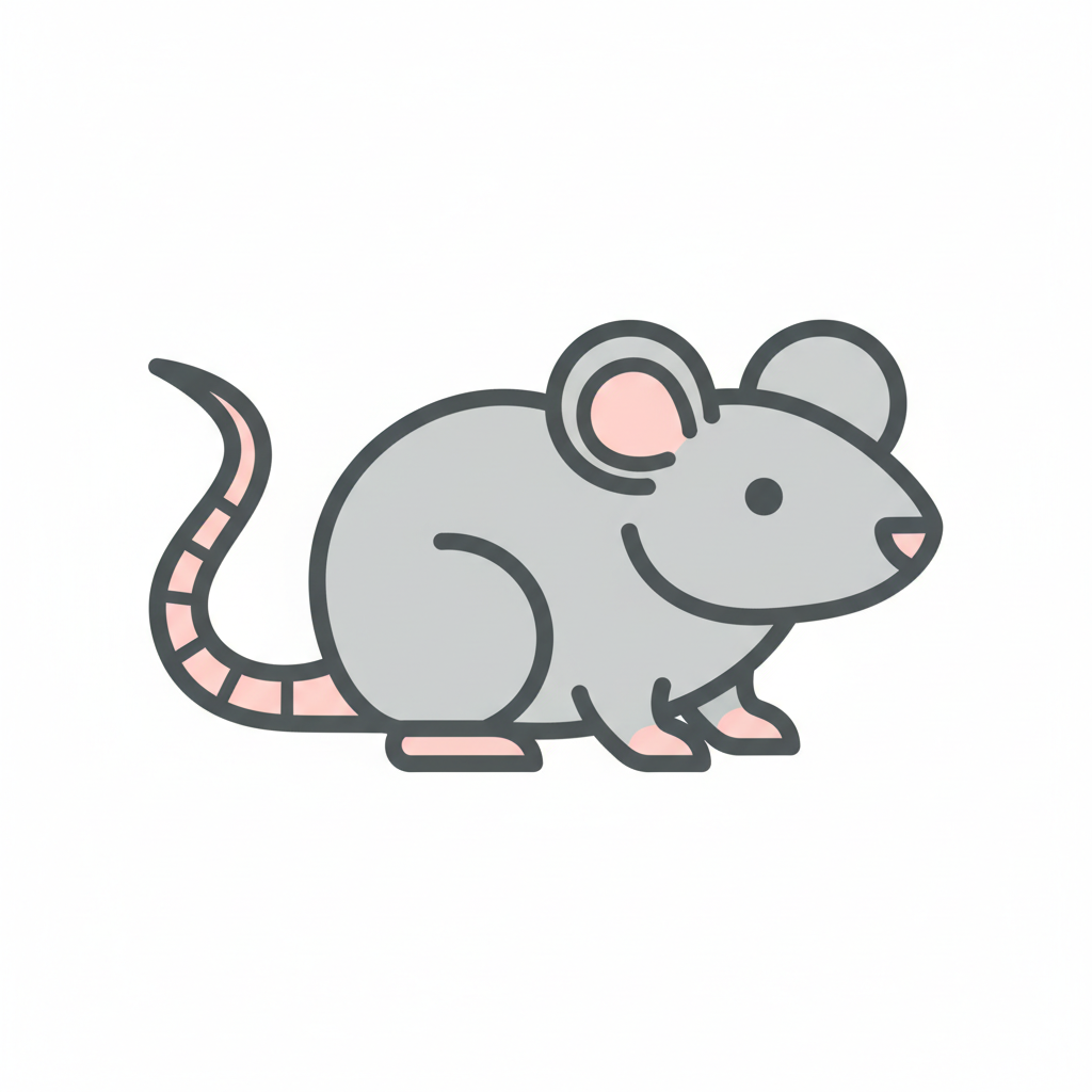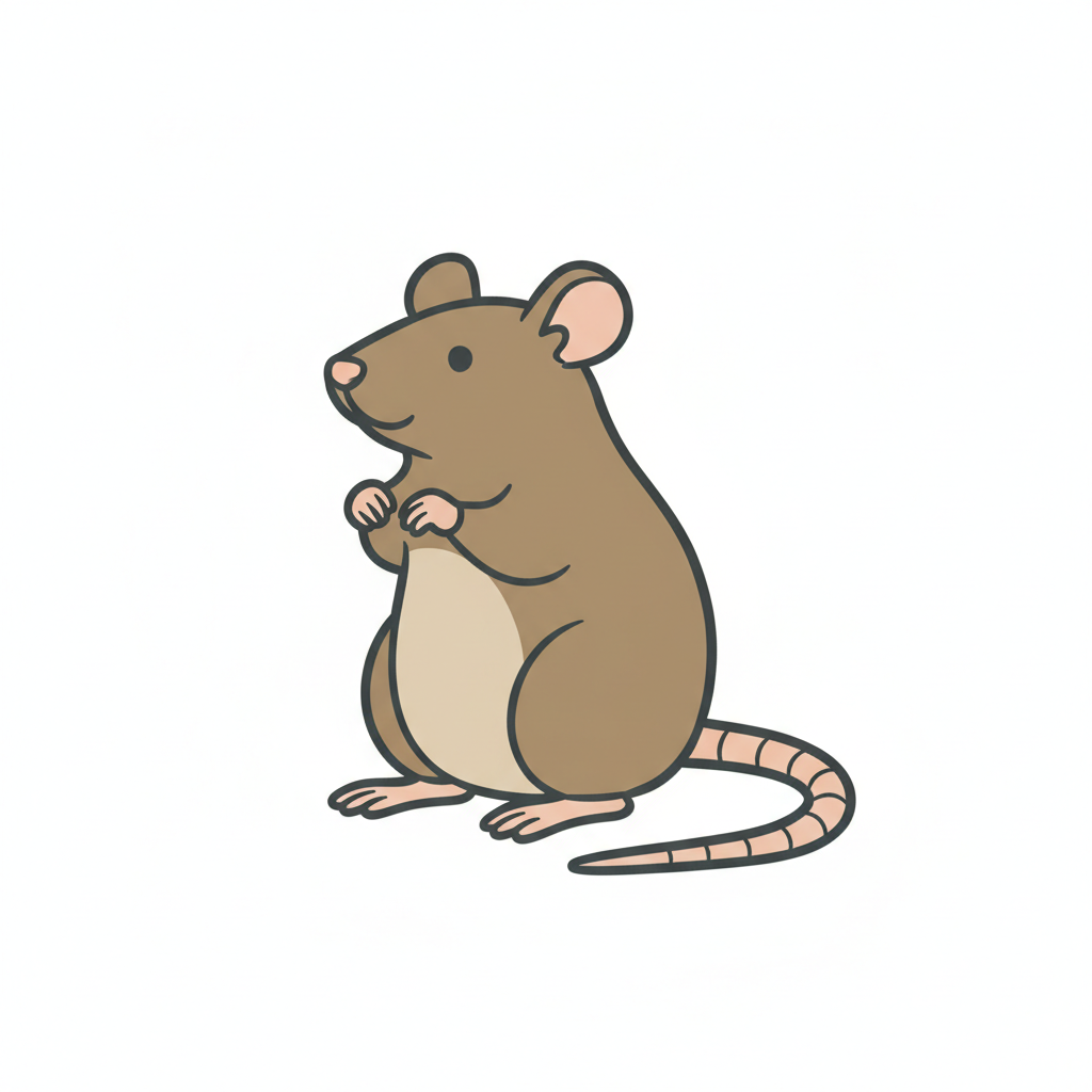 Zeichnung einer Maus mit dünnem Schwanz und kleinen Ohren.