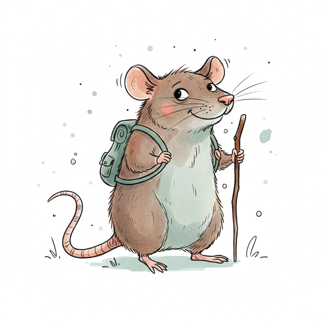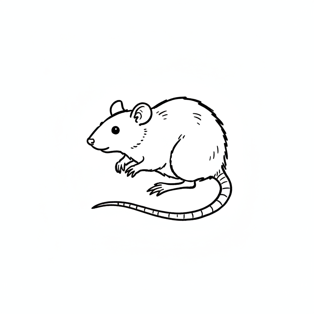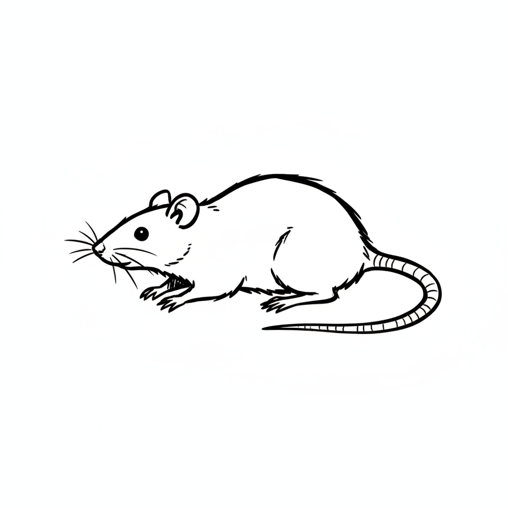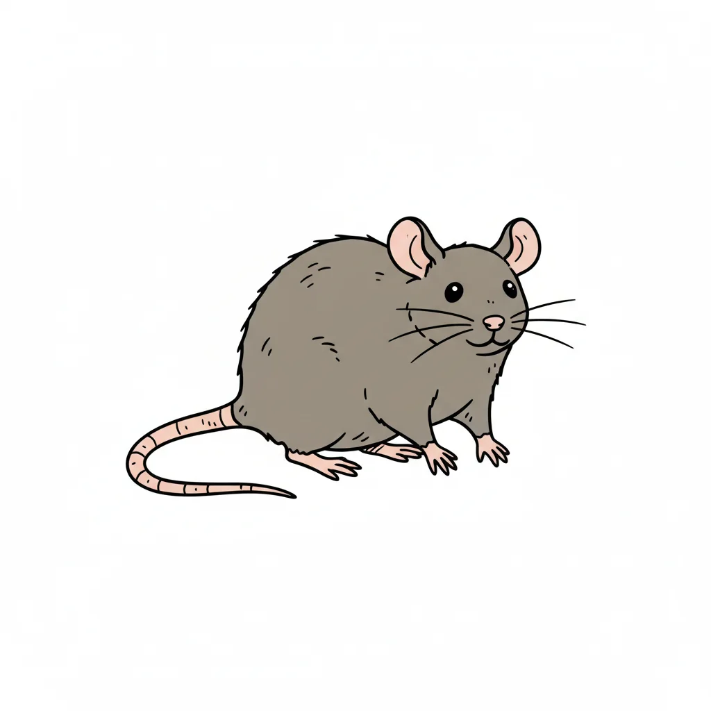 Zeichnung einer Maus mit dünnem Schwanz und kleinen Ohren.