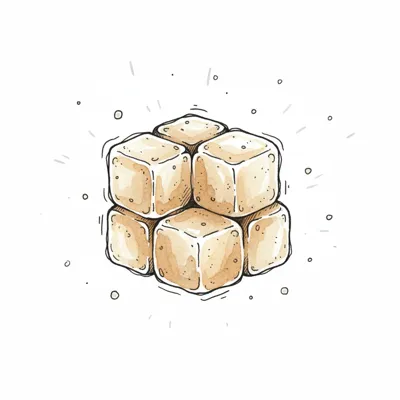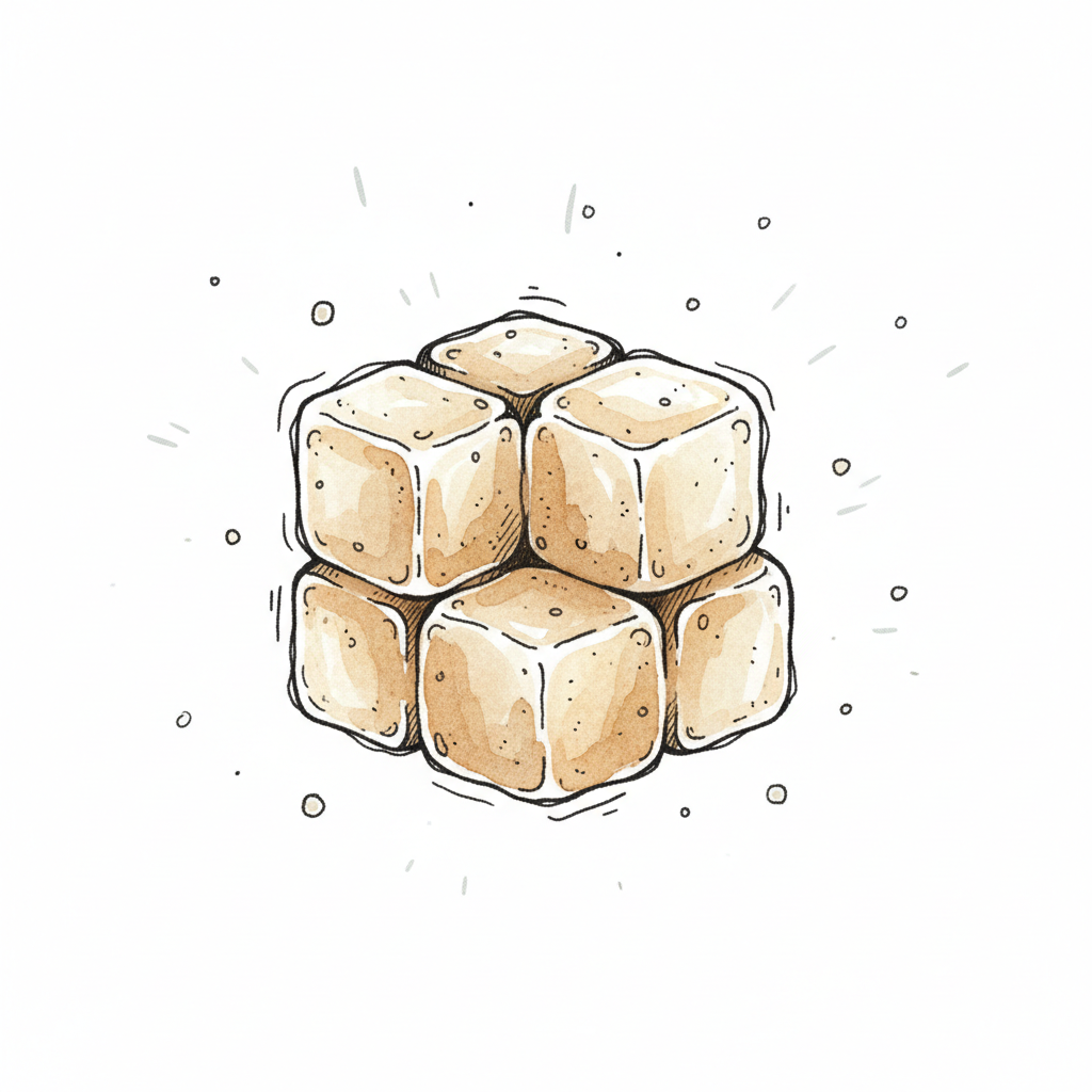 Illustration von sechs hellbraunen Würfeln, die gestapelt sind, mit skizzenhaften Details.