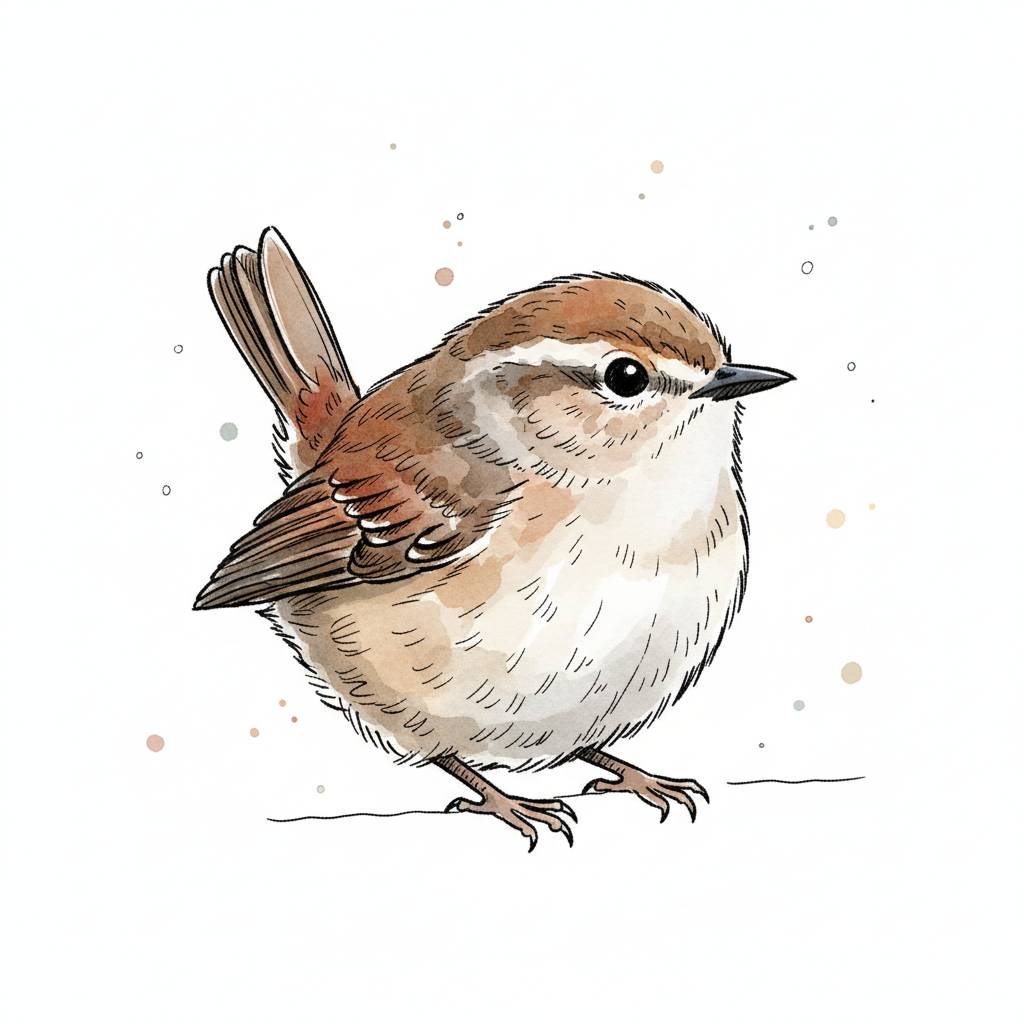 Niedliche Aquarell-Illustration eines kleinen braunen Vogels mit weißem Augenstreif.