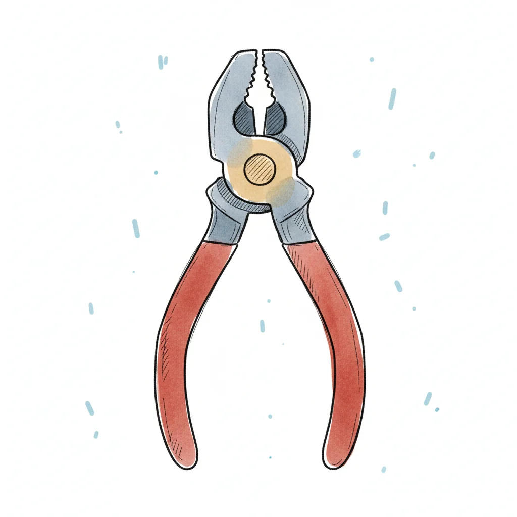 Illustration einer Zange mit roten Griffen und grauen Metallbacken auf weißem Hintergrund.