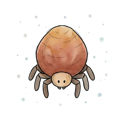 Illustration einer braunen Zecke mit großem Körper und kleinen Beinen im Aquarellstil auf weißem Grund.