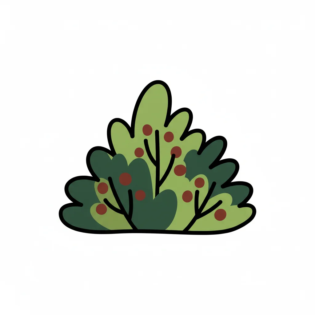 Eine stilisierte grüne Strauchillustration mit roten Beeren.