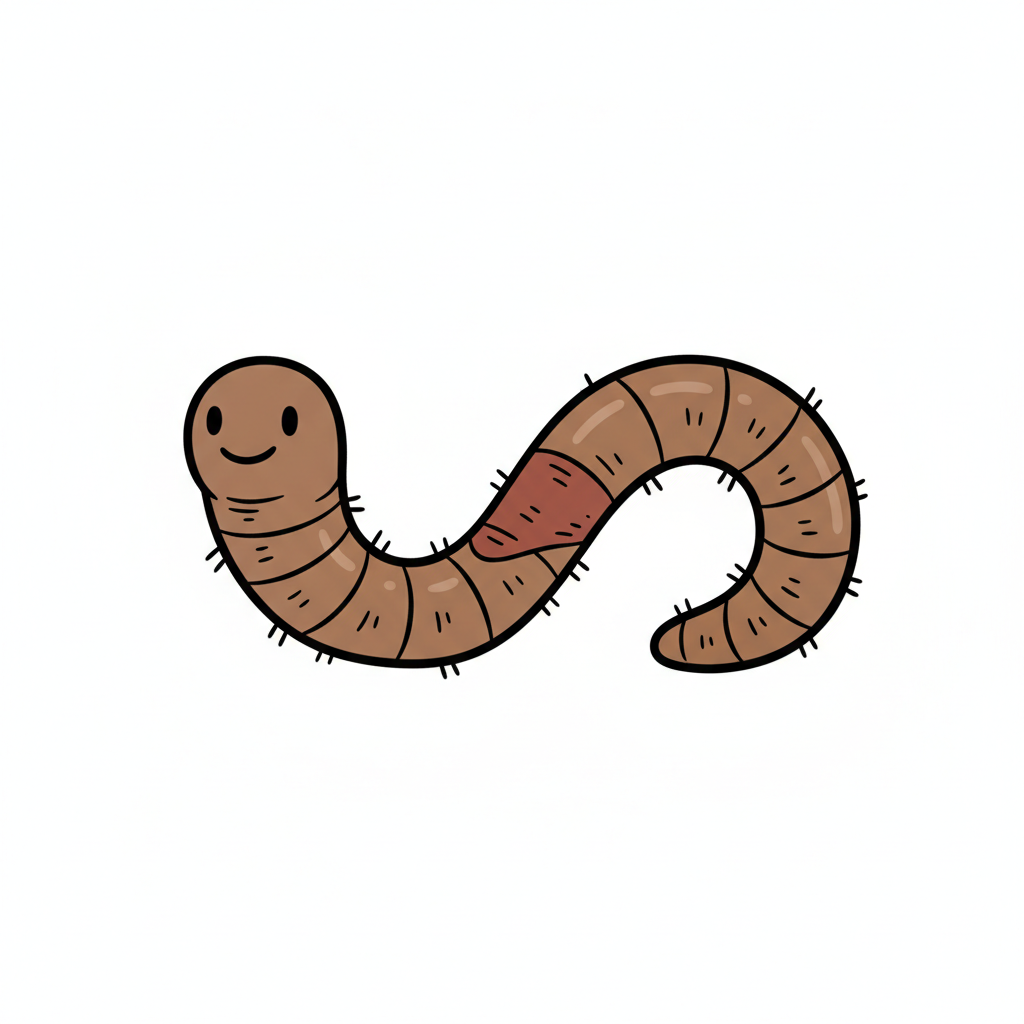 Ein fröhlicher, cartoonartiger Wurm mit einem lächelnden Gesicht.
