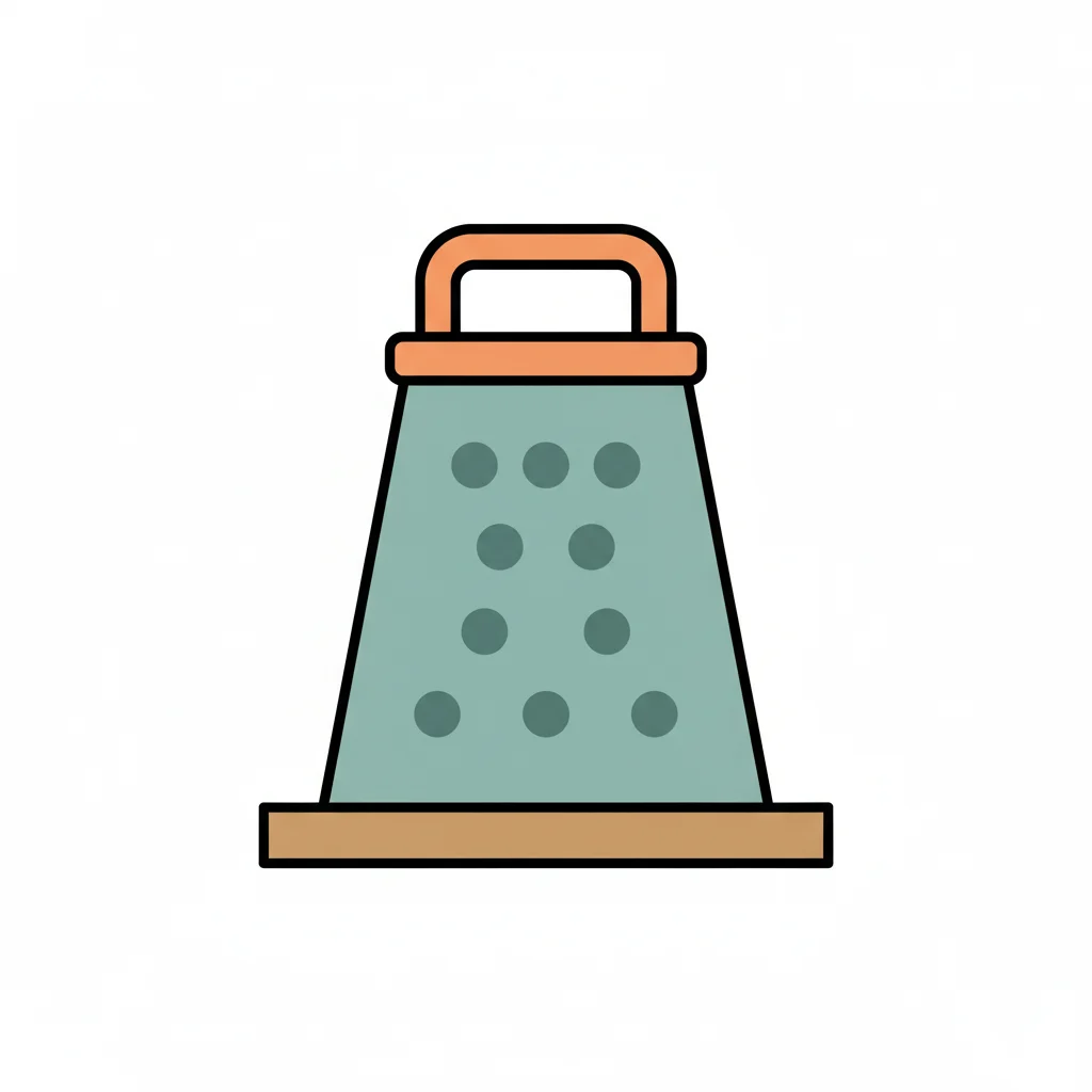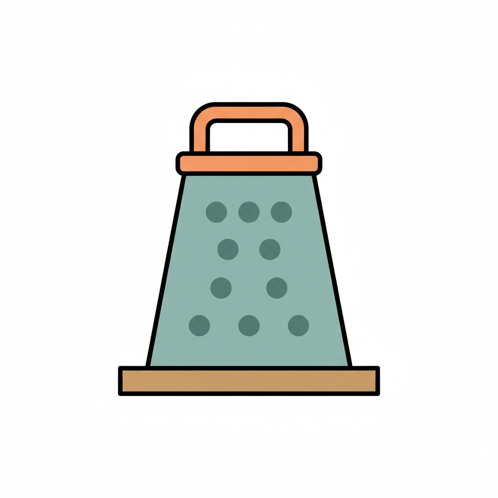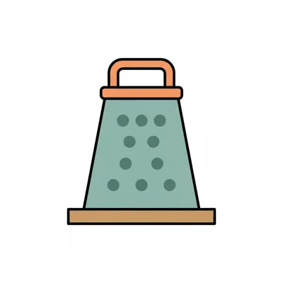 Ein bunter Küchenreibe mit Löchern und einem Griff.