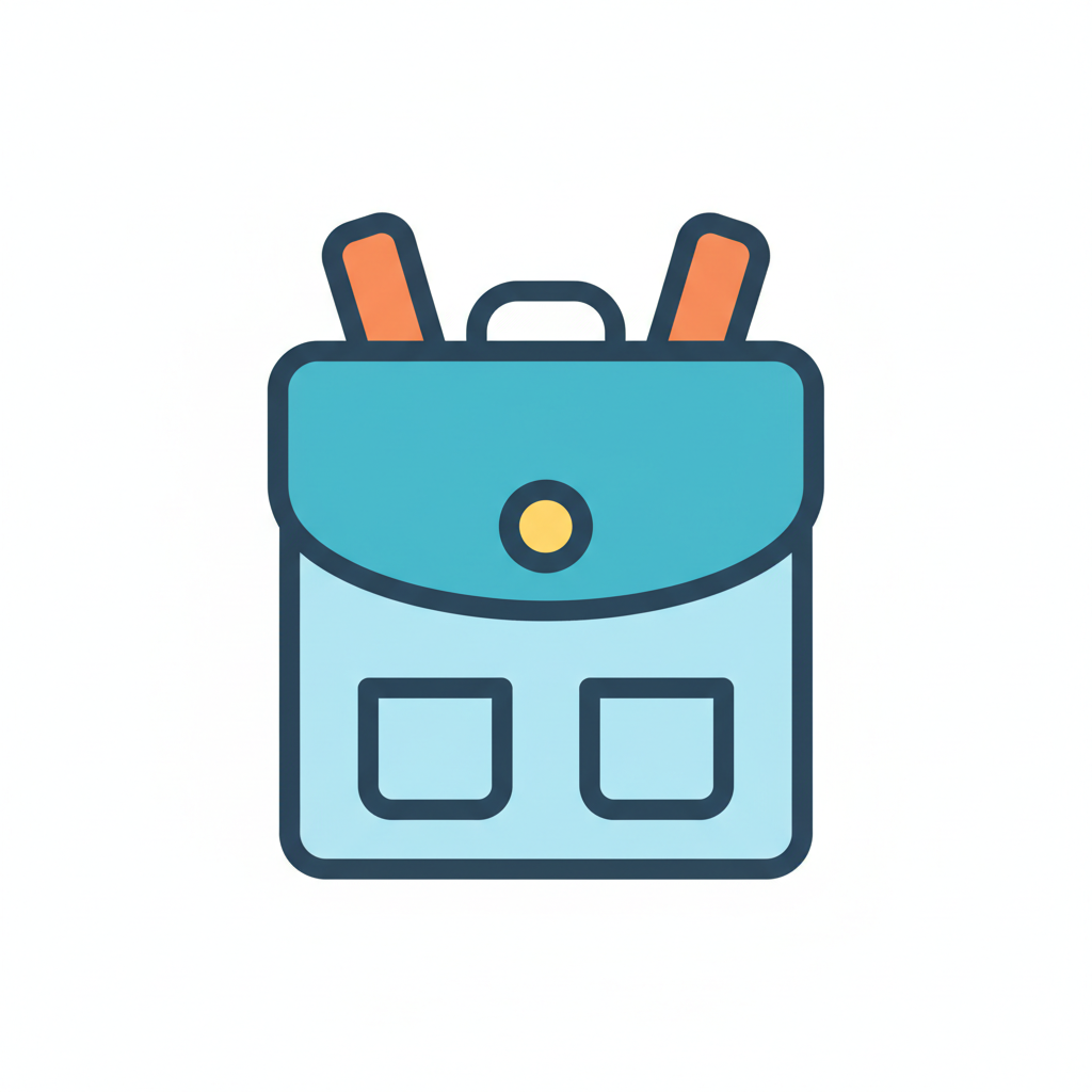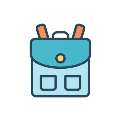 Ein stilisiertes Bild eines Rucksacks mit zwei Stiften.
