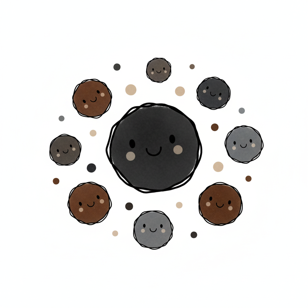 Handgezeichnete Kinderbuchillustration im modernen skandinavisch-nordischen Stil. Minimalistische, freundliche Figur mit einfachen Formen und leicht unregelmäßigen, handgezeichneten Linien. Ruhige, gedeckte Farbpalette, viel freie Fläche, reduzierte Details, sanfte Papier- oder Aquarellstruktur. Warme, ruhige, leicht humorvolle Stimmung, flächige Komposition ohne starke Perspektive, moderner nordischer Illustrationsstil, charmant und zeitlos.